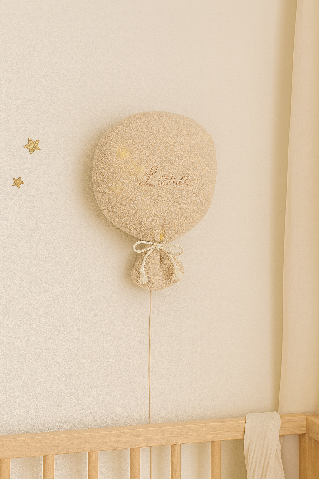 Apportez une touche de douceur et d’élégance à la chambre de bébé avec notre ballon décoratif premium. Fait main avec des matières nobles et naturelles, il crée une ambiance poétique et raffinée.
