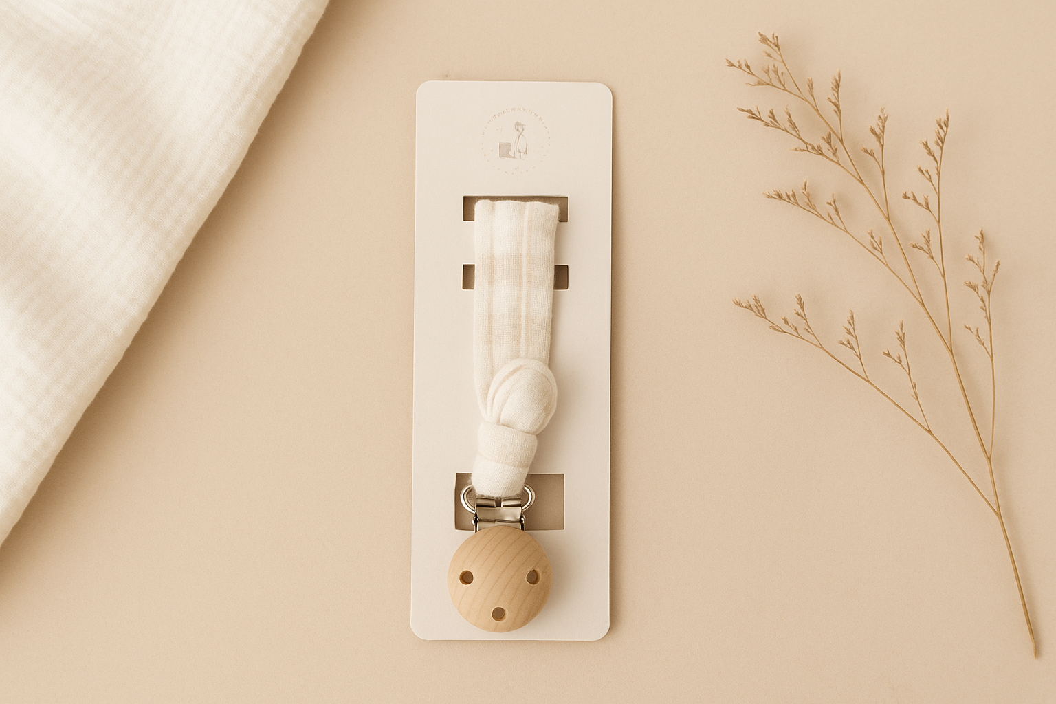 Offrez à bébé une attache tétine élégante et sécurisée, confectionnée en France avec des matériaux premium.